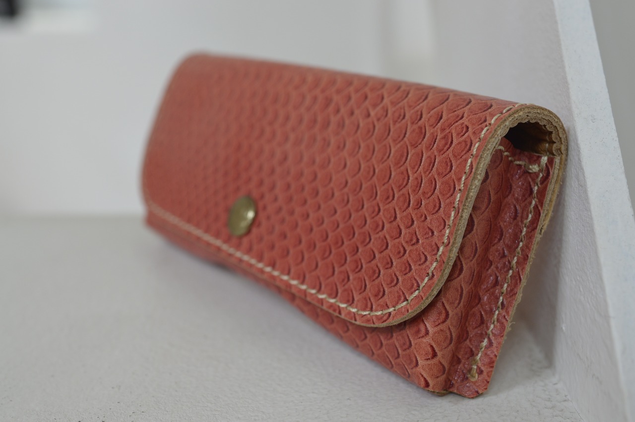 表も裏も革の銀面を使用した2トーンの眼鏡ケースです。
